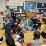 Ganz aufgeregt und nervös fieberten wir der Adventzeit entgegen und stellten uns ständig die Frage „Zieht Pinoma wieder bei uns ein?“ Ende November geschah es und wir entdeckten beim Zurückkommen in die Klasse nach einer Turnstunde einen Glitzerhaufen an jener Stelle, an welcher Pinoma im letzten Jahr sein Haus baute. Uns war sofort klar… Pinoma war es!